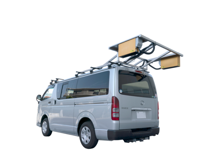 道路やトンネルなどのひび割れ等の状態を検査するインフラ保全検査システムの据付や保守を行っています。